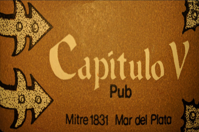 Deduje que lo que vi era el 1831… (Un edificio a un lado, puede que 1829 si no me equivoco, y un comercio después también “innumerado”), todo su frente cubierto por un portón o persiana color marrón ennegrecido con dibujos varios, de un probable blanco con luz o limpieza. El punto exacto de la entrada a aquel espacio, con magia, que fue “Capítulo V”, ahora un disparador, al fin, como ocurrió hasta este punto en forma general para evocar a esa, otra, Mar del Plata, que puede o no considerarse fue mejor, más alegre, etc., a través de un capítulo, un capítulo tal vez dentro de este relato… pero real, un período con la costumbre de cruzar la puerta de “Capítulo V”, donde tomé el mejor café irlandés de mi vida.