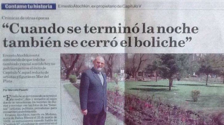Ernesto Atochkin que bien merece ser ilustre en la ciudad, hoy con 82 años es gerente de una empresa del rubro de servicios inmobiliarios, dueño y creador de ese fenómeno que fue “Capitulo V”. Es una lástima que únicamente es posible encontrar puntual sobre (más de lo que aquí se está escribiendo) en el blog de Atochkin en Facebook, con último posteo por 2016 y que al margen de algunas fotografías (Referencias al pie) y comentarios, falta una buena reseña de la historia del local.