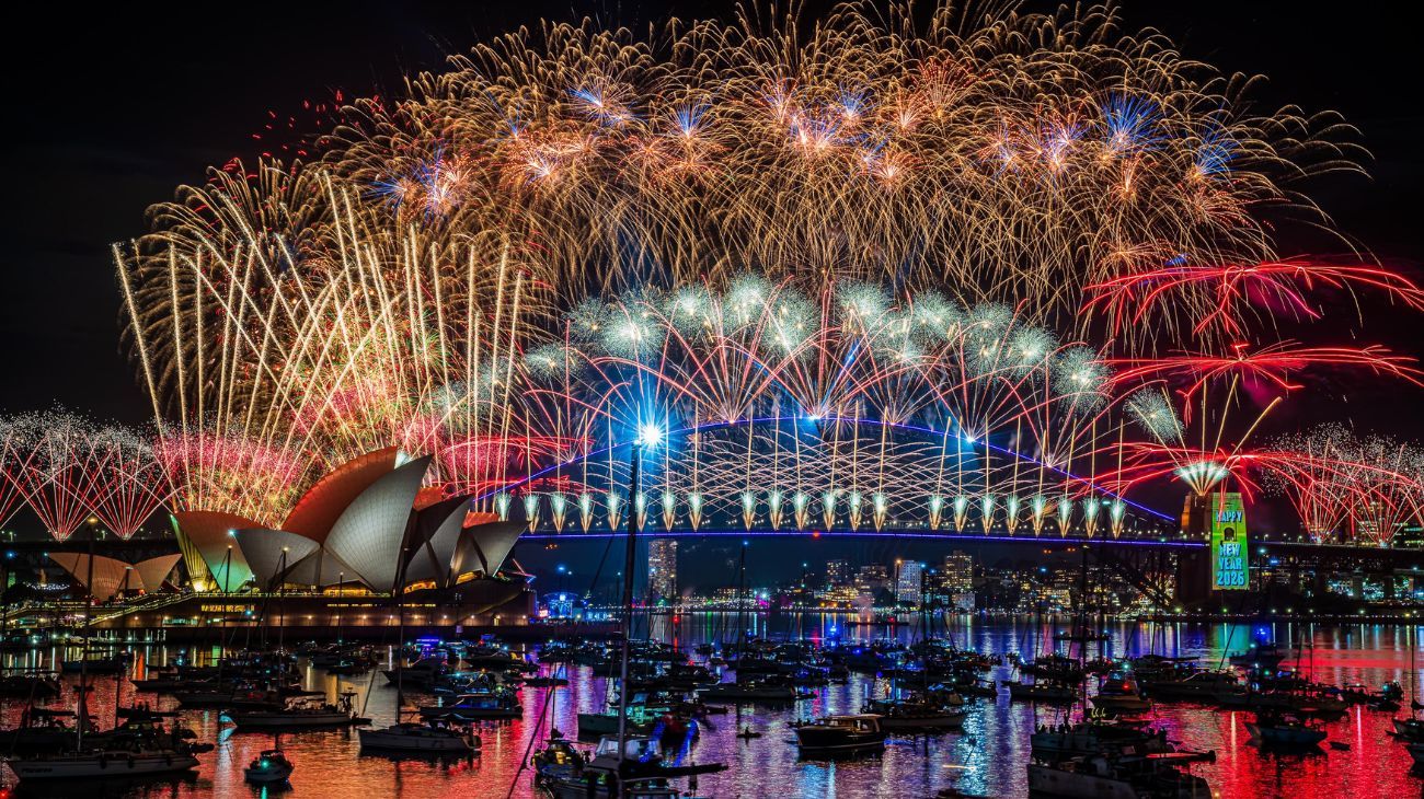 Nueve toneladas de fuegos artificiales iluminaron el cielo sobre el icónico puente y la Ópera de Sídney ante cientos de miles de espectadores.