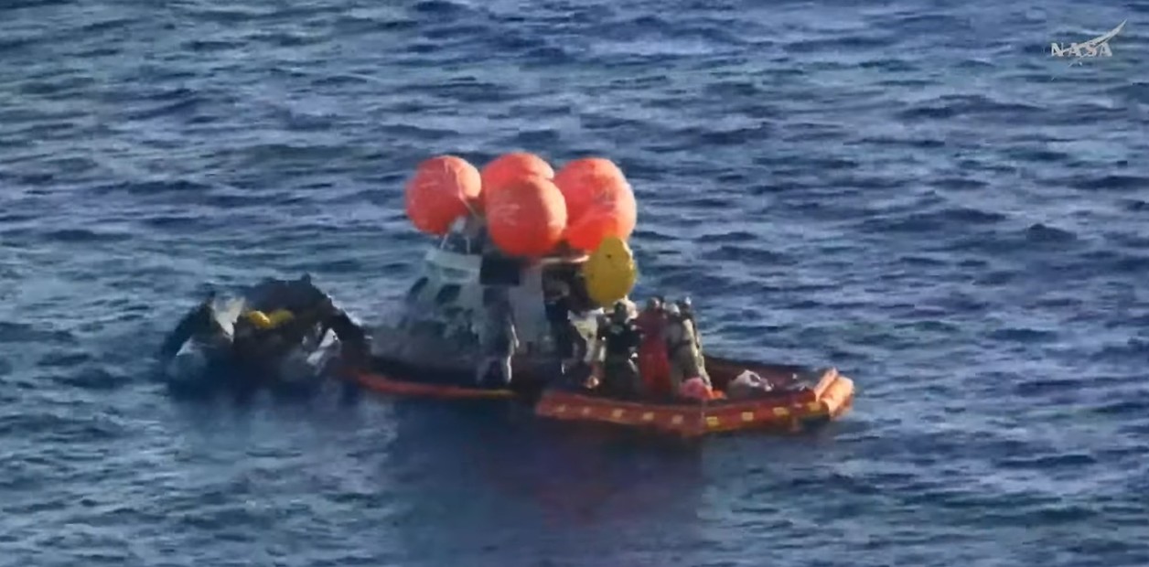 La NASA despachó sus equipos de rescate para sacar a los astronautas de la cápsula y subirlos a un helicóptero. Ya en el buque USS John P. Murtha se debía iniciar la primera etapa de evaluación médica.