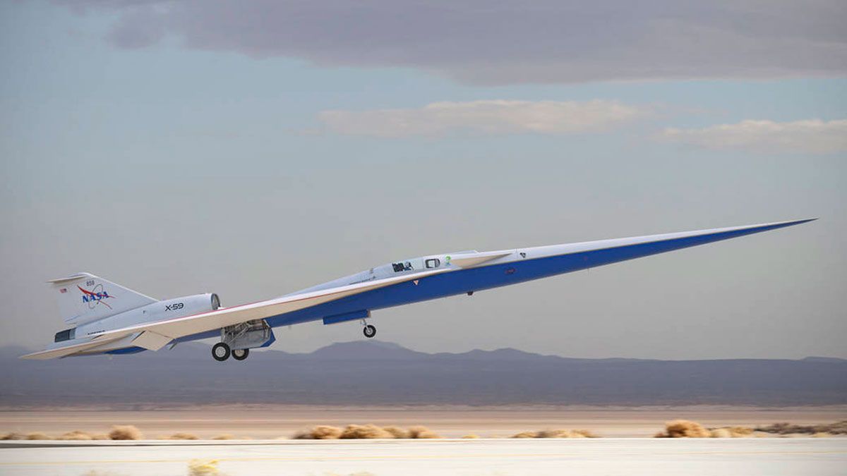 El avión supersónico X-59 fue presentado hoy por la NASA en las instalaciones Skunk Works de Lockheed Martin, uno de sus principales contratistas, ubicado en la ciudad estadounidense de Palmdale, California, con el objetivo de volar más rápido que la velocidad del sonido sin generar un fuerte estampido sónico.