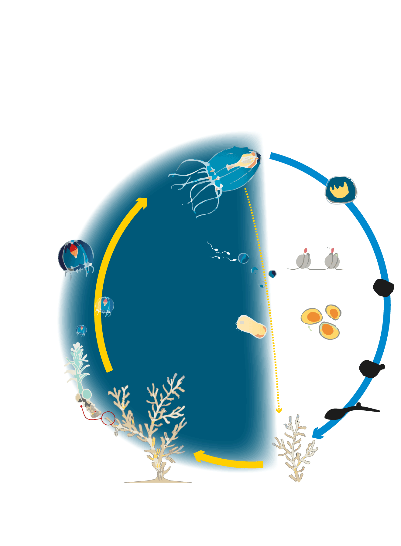 La inmensa mayoría de los seres vivos, tras la etapa reproductiva, avanzan en un proceso característico de envejecimiento cuyo destino final es la muerte. Sin embargo, esta medusa es capaz de escoger otro camino, revertir su ciclo vital y rejuvenecer. Lo hace como si fuera una mariposa, pero en lugar de morir cuando alcanza su forma más bella, cambia de nuevo a una oruga. O podría decirse también que es como si un pollo tuviera la capacidad para volver a ser un huevo, en un ciclo sin fin que desafía al paso del tiempo con el rejuvenecimiento.