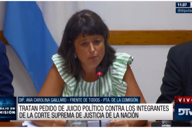 Fue en el marco de la comisión de Juicio Político, que preside la diputada Carolina Gaillard (FdT). Juntos por el Cambio propuso la inadmisibilidad “in limine” del proceso de juicio político a miembros de la Corte.