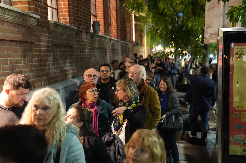 El atardecer del sábado ya tenía esta pequeña multitud en la plaza seca del Teatro Colón