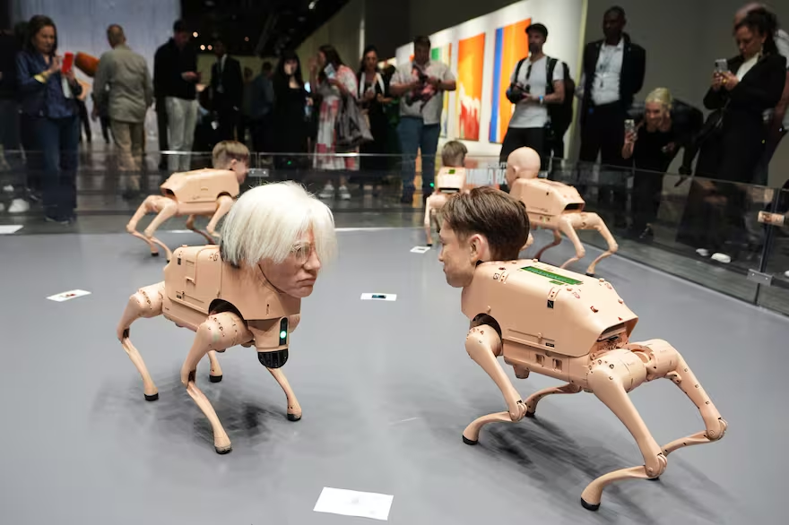 Igual de inconfundibles son las facciones de Mark Zuckerberg, Elon Musk, Jeff Bezos, Andy Warhol y Pablo Picasso recreadas en silicona por Beeple junto a la suya propia en las cabezas de unos perros robots que hacen sus necesidades en el piso: son fotos que reflejan sus distintas maneras de ver la realidad. Ya son un éxito entre el público que se las puede llevar de forma gratuita, en una bolsa que dice “muestra de excremento”, en la flamante sección Zero 10.