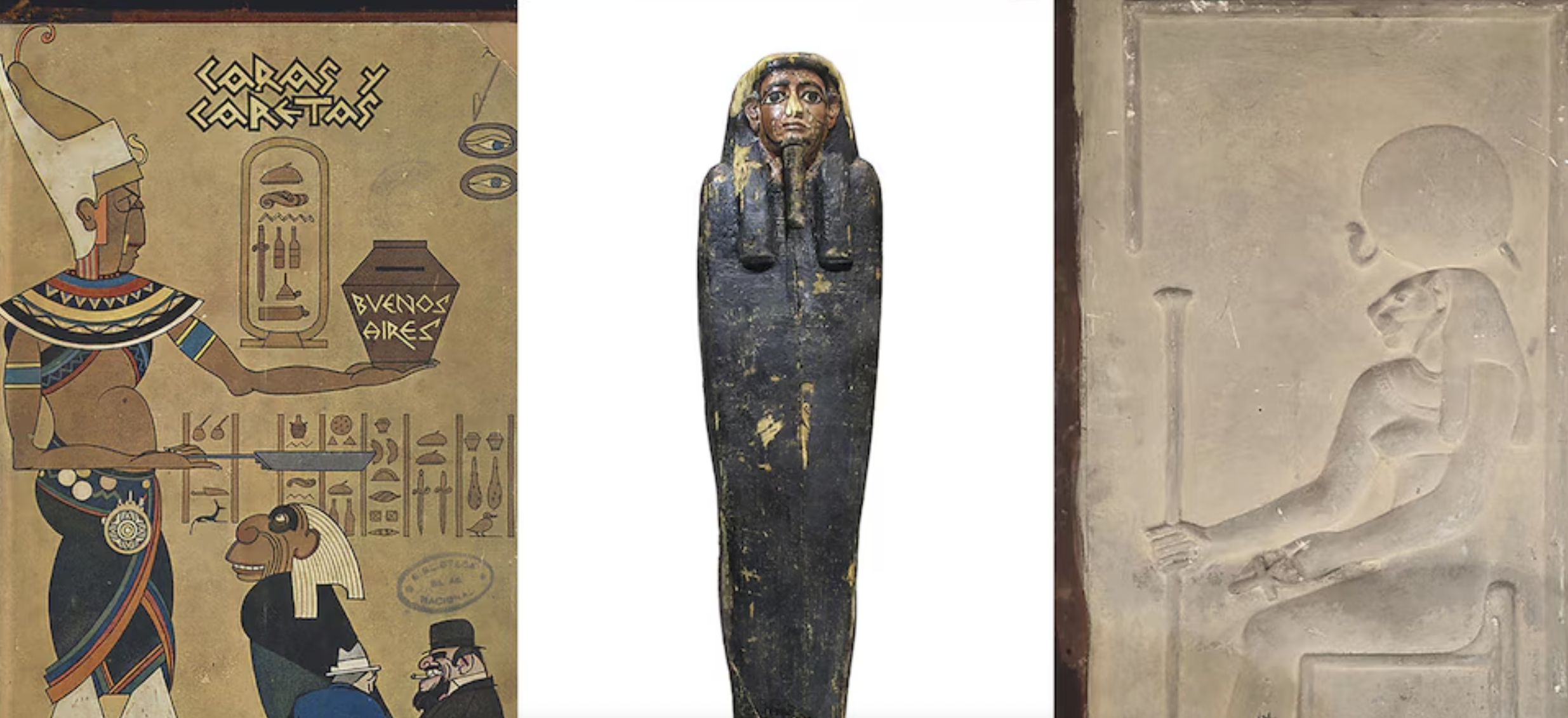 El recorrido incluye también representaciones artísticas que evidencian la influencia egipcia en la cultura local, como el ensayo fotográfico de Facundo de Zuviría dedicado a la arquitectura porteña inspirada en pirámides, obeliscos y otras construcciones emblemáticas.