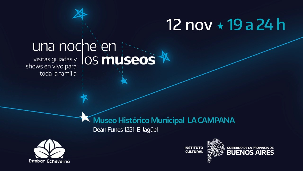 El Municipio de Esteban Echeverría será parte de “Una Noche en los Museos”, una iniciativa del Instituto Cultural de la Provincia de Buenos Aires que se desarrollará este 12 de noviembre, de 19 a 24 horas, en todo el territorio bonaerense.