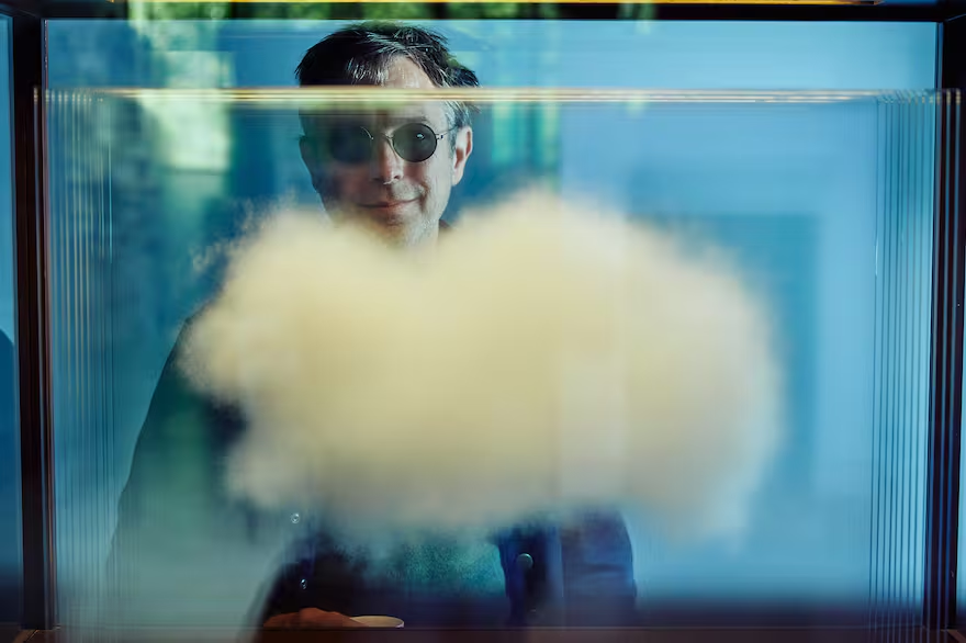 El taller de Leandro Erlich es una fábrica con operarios, una biblioteca con escritorios donde trabajan varios gestores, un espacio de exhibiciones silencioso y una cocina que parece a estrenar. Son cuatro pisos a los que asciende por una escalera de vértigo, que va desde una puerta rota como si la hubiera atravesado el correcaminos hasta el espacio de guardado donde hay una nube atrapada en una cajita de cristal. Es la usina creativa de uno de los artistas argentinos de carrera más prolífica a nivel internacional. Es muy poco el tiempo que habita su búnker de Chacarita.