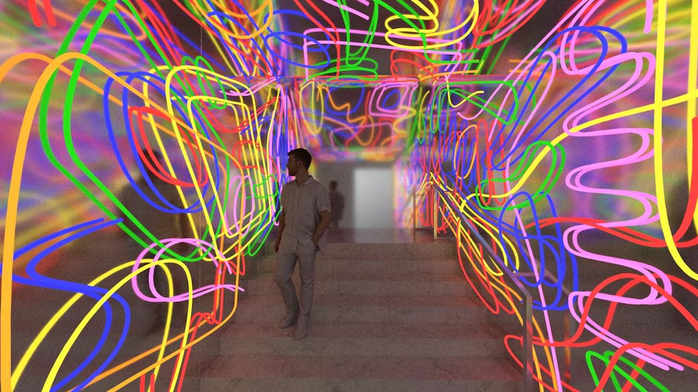 La instalación, acompañada por una banda sonora original, reinterpreta en clave digital la histórica Soft Gallery que la artista presentó en Washington en 1973.
