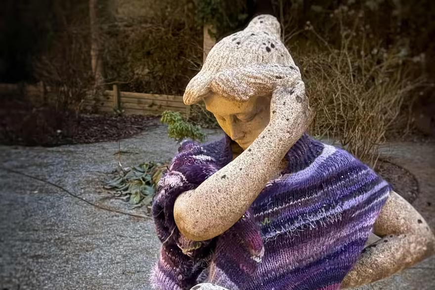 Protesta de un grupo de tejedoras por estatuas de mujeres desnudas: las vistieron y ahora la gente se para a verlas