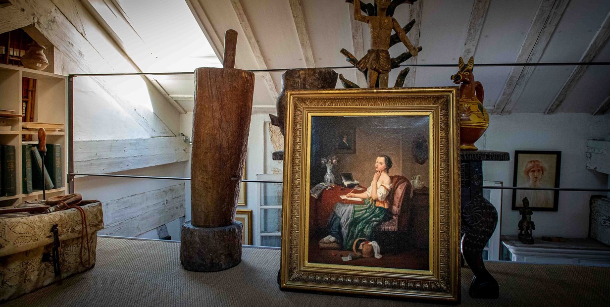 Por esos azares de los coleccionistas se encontró con un óleo de Adolphe D’Hastrel, un militar francés y noble de Alsacia, que fue el gobernador de la isla Martín García durante el bloqueo francés en el Río de la Plata y pintor. Formaba parte de la sucesión familiar y lo vendían. En la escena, una jovencita, con los hombros desnudos y pollera de seda, junto a una mesa de mantel rojo,mirada pensativa, escribía una carta. Tintero, flores en el jarrón, un espejo oval y un aguamanil con jarra. Una decoración de un dormitorio en una casa burguesa francesa del siglo XIX. En la pared del cuadro, enmarcado, un retrato masculino que no era otro que el del general José de San Martin, identificado como tal. Una tela de 63 centímetros por 49,5. D’Hastrel fue uno de los primeros pintores franceses en el Rio de la Plata.