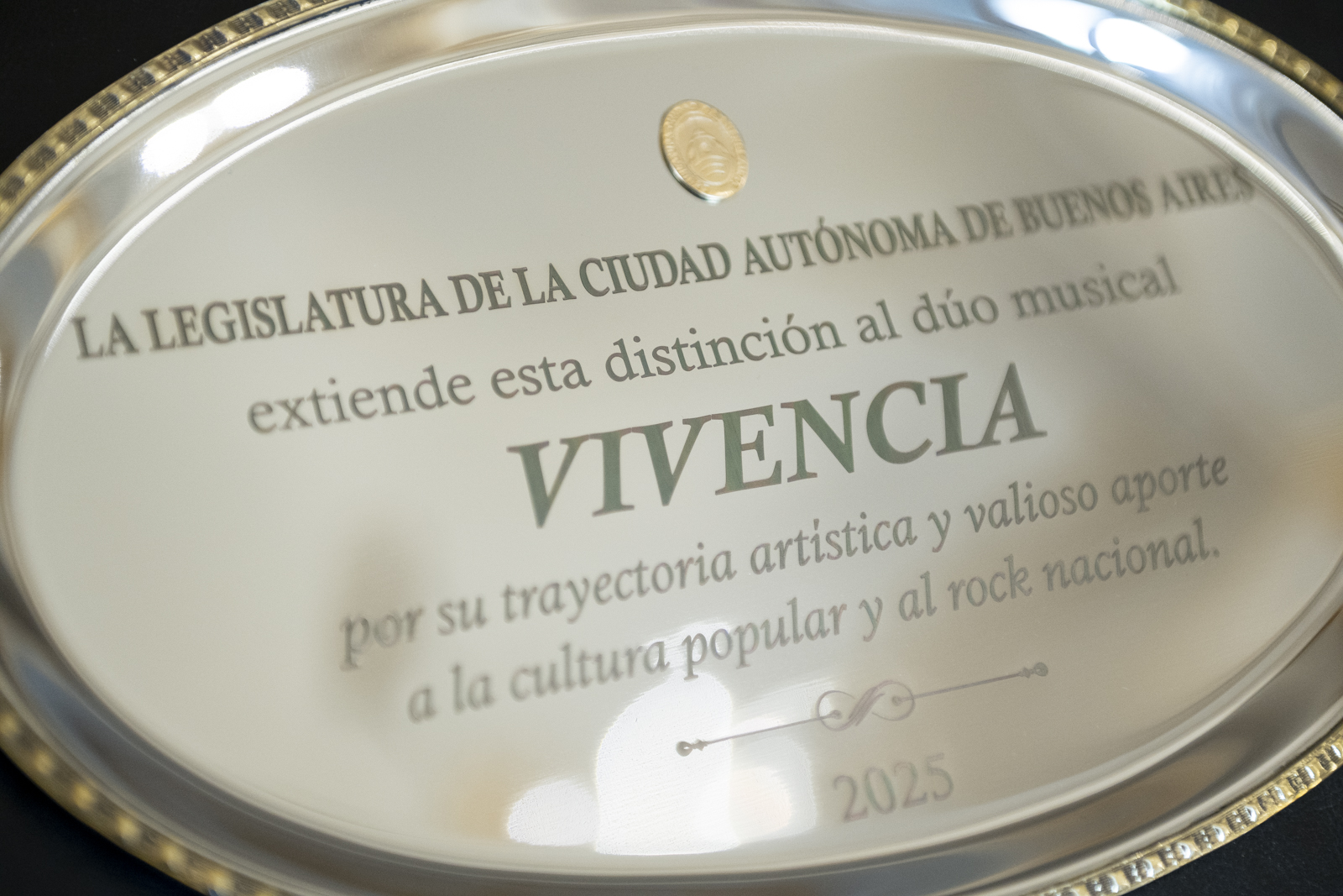 Durante un acto realizado en el Salón Dorado y encabezado por el diputado Claudio Ferreño, autor de la iniciativa, la Legislatura reconoció la extensa trayectoria artística del dúo musical Vivencia, integrado por Héctor Ayala y Eduardo Fazio, por su valioso aporte a la cultura popular y al rock nacional. Estuvieron presentes la ex legisladora Maia Daer, coautora; la compañera de vida de Héctor Ayala, Cristina García; Jorge Mosquito Garrido, sonidista del dúo y numerosos amigos y personalidades del ambiente.