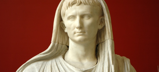 Los romanos ya pintaban grafitis, compraban comida callejera y se quejaban de los caseros. El emperador Augusto, representado con el velo de pontífice máximo, en una estatua del Museo Nacional Romano.