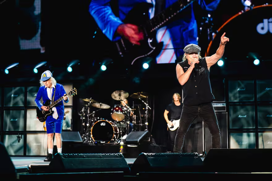 Hacia el final, la intensidad volvió a concentrarse: “You Shook Me All Night Long”, “Whole Lotta Rosie” —esta vez con la muñeca inflable reemplazada por una proyección en las pantallas— y “Let There Be Rock”, con el infinito solo de Angus que se estiró hasta volverse escena: elevado en una tarima, girando sobre el suelo, empujando el tiempo hasta el límite y recibiendo una correspondida ovación.