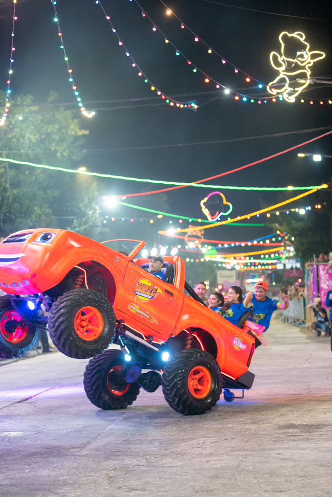 Carrozas, cabezudos, máscaras sueltas y mini carrozas, básicamente montadas a partir de la técnica de la cartapesta y el tallado de “telgopor”, son la marca registrada de esta fiesta que hace de la creatividad e ingenio de sus artesanos y artesanas un valor único para retratar la vida cotidiana. A su vez, sorprendentes atracciones mecánicas, grupos de autos, comparsas, batucadas, carros musicales y disfrazados completan un desfile incesante de motivos a lo largo de los 700 metros de su corsódromo.