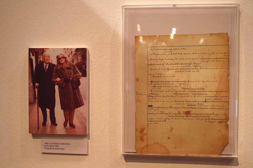 En una pared hay una foto hermosísima de Canto y Borges, ya grandes. Se los ve caminar por Buenos Aires. “La sacó el físico y músico Alberto Rojo, que ese día vio a Borges por la calle y le pidió una foto. Canto, que acababa de vender el manuscrito de ‘El Aleph’, lleva del brazo a Borges”, agrega Rosato y recuerda la historia de ese célebre manuscrito. “Estela lo pasó a máquina para entregarlo prolijo a Sur y ese original con las anotaciones del autor quedó en su casa. La mamá de Estela vio el manuscrito y lo guardó en algún cajón. Permaneció mucho tiempo guardado. Hasta que, finalmente, en los años 80, Canto necesitaba plata y le pide permiso a un Borges ya célebre para vender el manuscrito”.