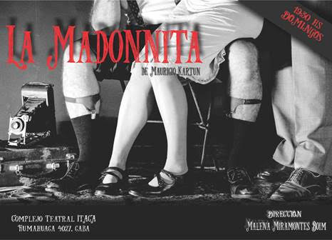 La historia de LA MADONNITA transcurre a principios del siglo XX en un altillo caluroso de Parque Lezama. Un hombre saca fotos a su mujer y luego las comercializa entre la clase trabajadora inmigrante. La obra pone en primer plano la fricción entre deseo, sexo y poesía con todo el talento de la pluma de Kartun. En palabras del autor, la Madonnita es una posible indagación sobre “la fantasía de mantener inalterable una imagen transmitida a la cabeza del amante. Perfecta. Sin el deterioro del tiempo ni la vulgaridad cotidiana de la relación. La carne deseada mantenida lejos de su propia carne, olvidando, claro, que la carne duele”.